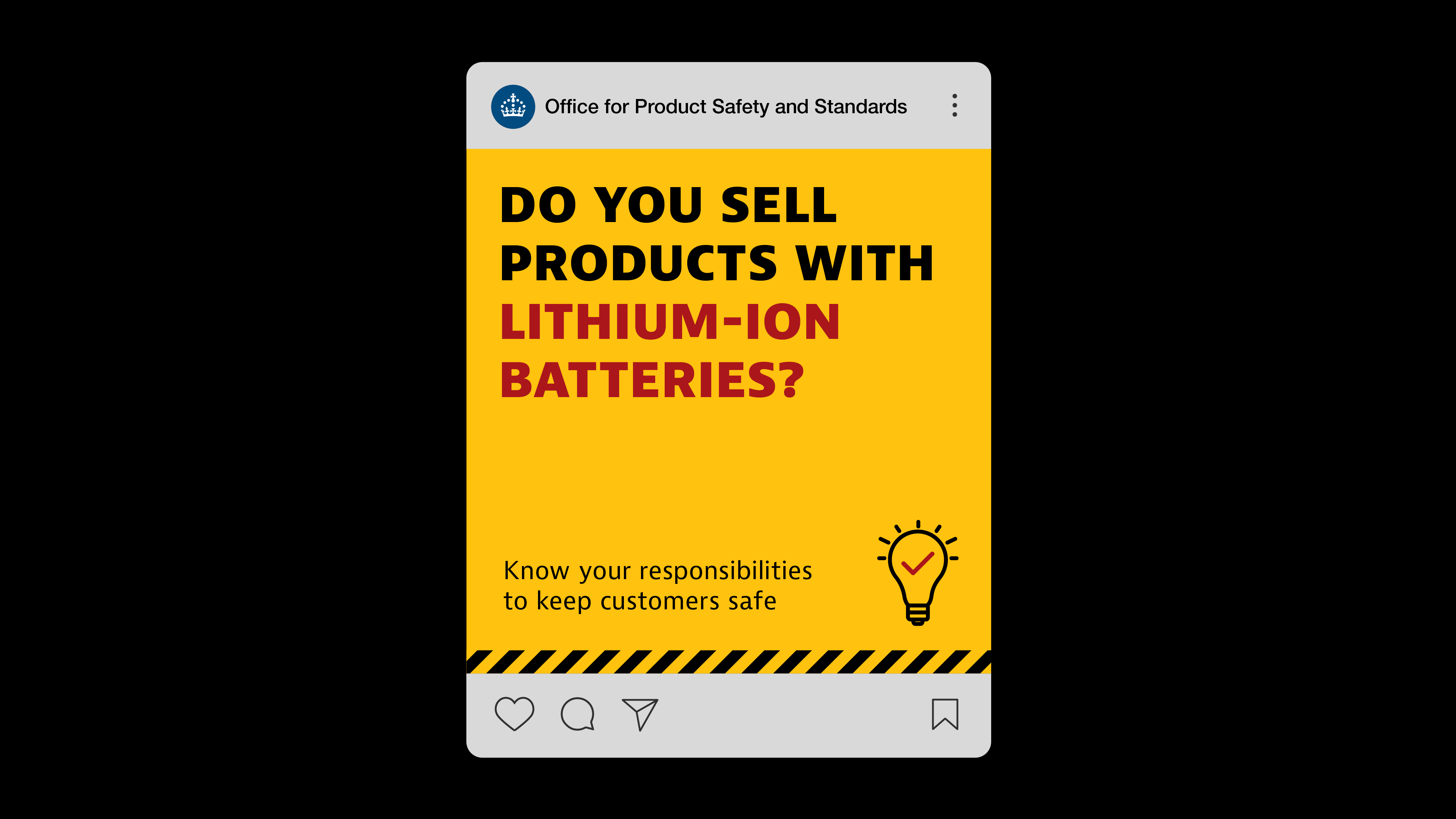 We were asked by the Office for Product Safety and Standards to create a social media campaign highlighting the risks of lithium-ion batteries in everyday products. The aim was to educate consumers on safe use and remind businesses of their legal responsibilities. A hard hitting but not scaremongering tone was required and the assets needed to work in English, French and Spanish.